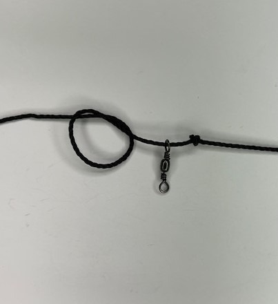 Throw a loop in the Main Line then pull the roll of Main Line with the remaining swivels through to form another knot. Work this knot down until it is approximately ¾” from the first knot, with the swivel between the 2 knots.